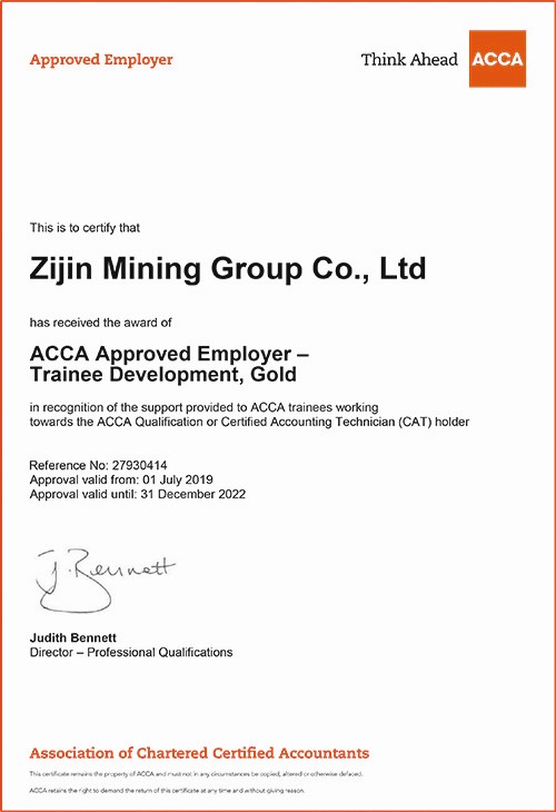 成为ACCA认可雇主的企业,除了在人才招聘政策上以“ACCA优先”外,可以获取最新、最专业的全球财会行业信息,还可以获得ACCA定期定向的人才推荐。该平台将有助于紫金矿业培养更多具备国际视野、学习创新潜力和全面素质技能的财务金融核心管理人才。