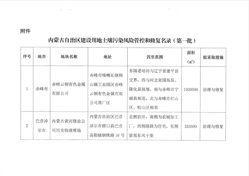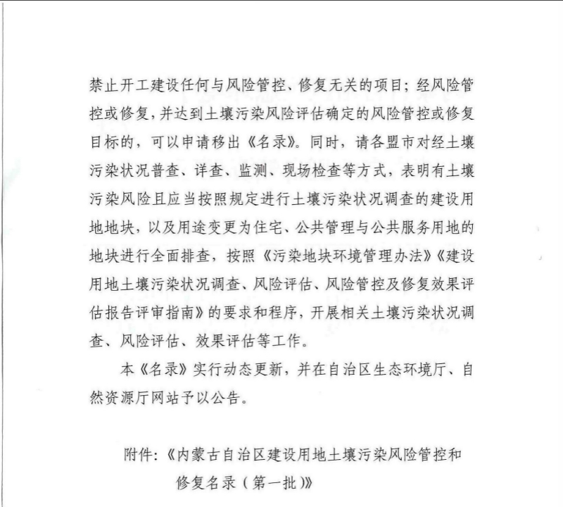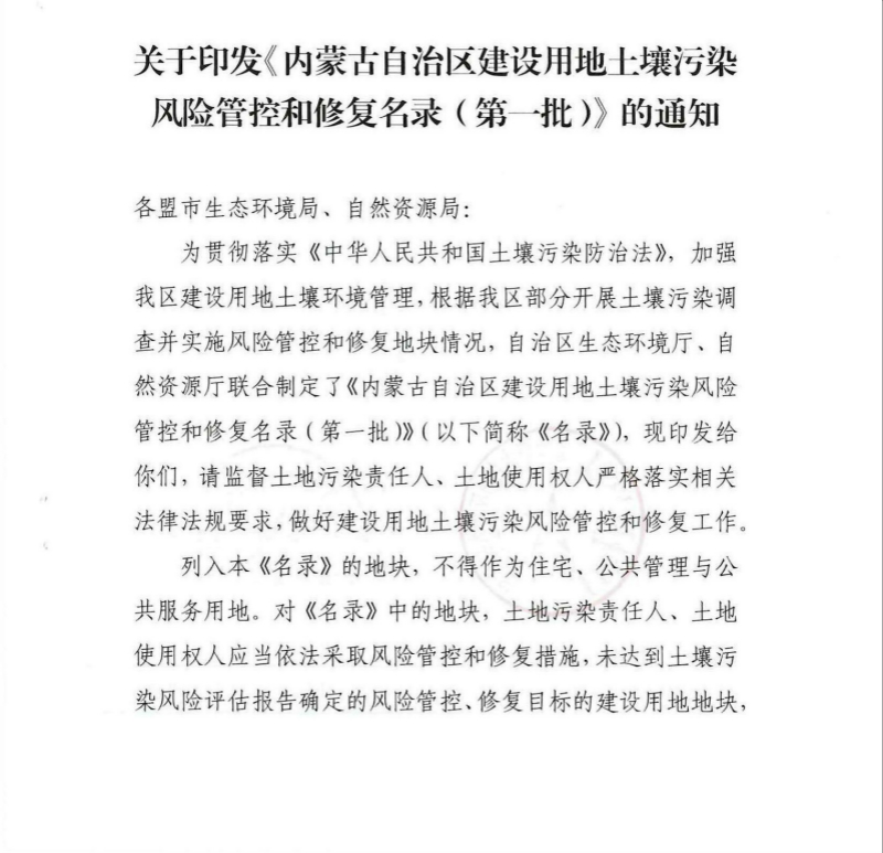 关于印发《内蒙古自治区建设用地土壤污染风险管控和修复名录(第一批)》的通知