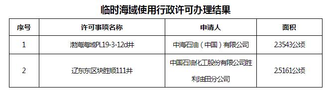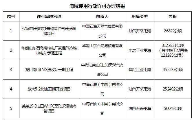已批准海域使用权设立行政许可办理结果