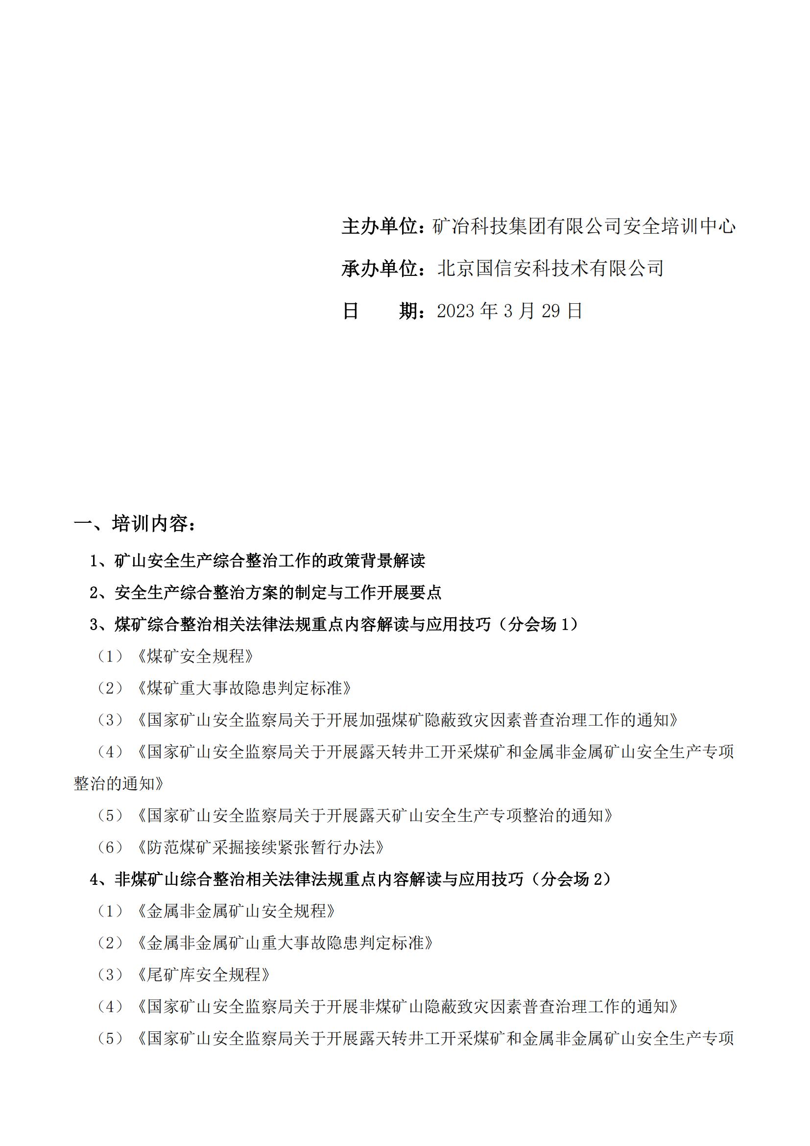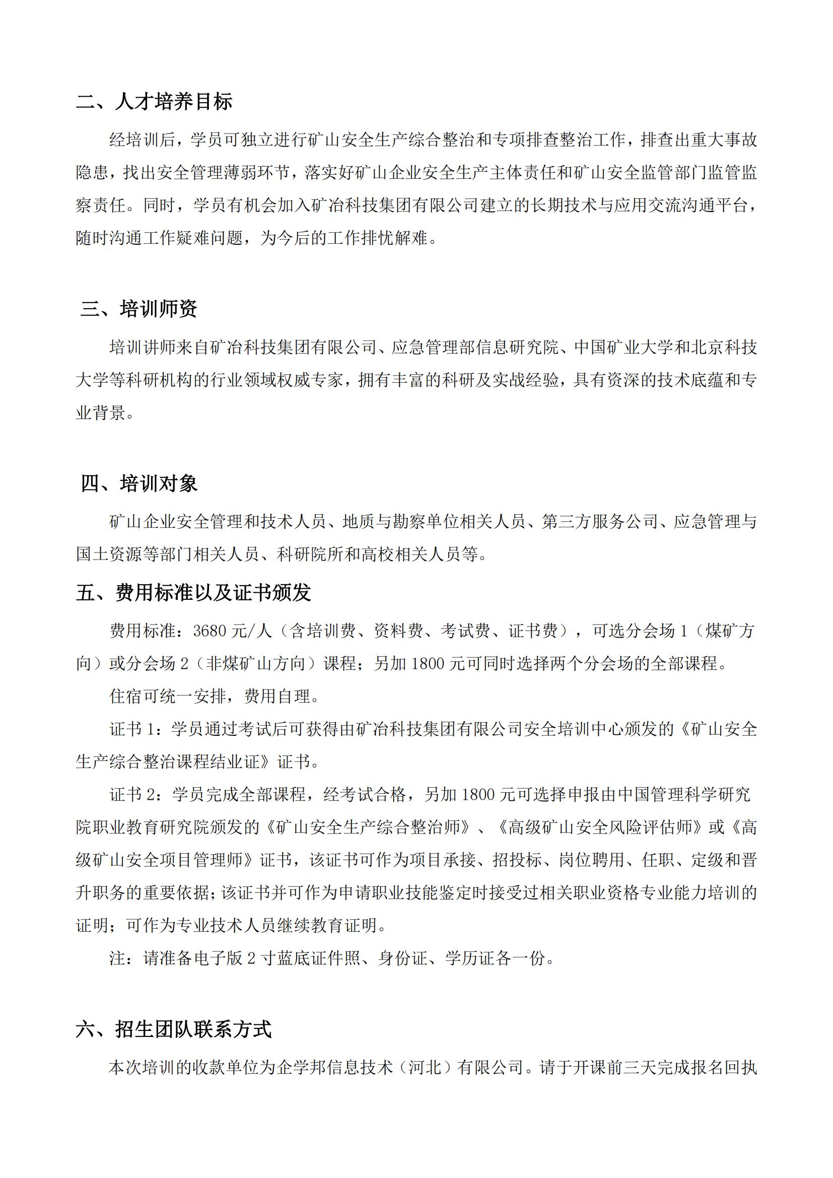 关于举办“全国矿山安全生产综合整治”高级研修班的通知