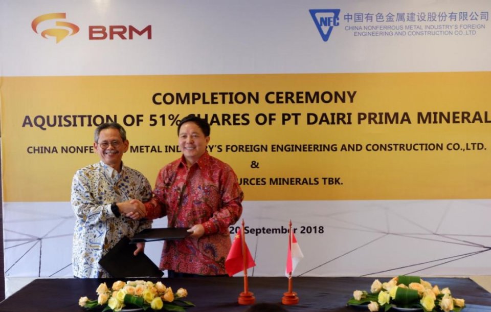 9月20日,中色股份与印尼布密资源(PT Bumi Resources Minerals Tbk)在雅加达举行股权交割仪式。中国驻印尼使馆李汉清临时代办,中色股份王宏前总经理,马金平副总经理,刘宇财务总监,布密资源尼万董事长,萨塔力CEO出席仪式。
