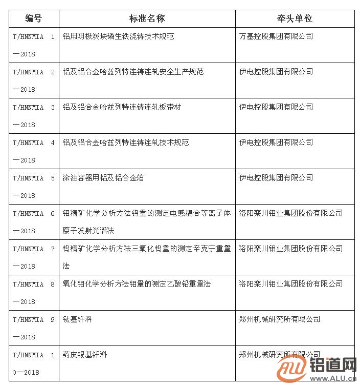 河南有色协会发布10项团体标准