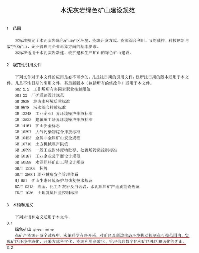 《水泥灰岩绿色矿山建设规范》