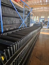 波形挡边输送带被广泛引用与港口、冶金、矿山、电力、煤炭、铸造、建材、粮食、化肥等领域物料输送。使各种散装物料能以0-90度作任意倾角连续输送,具有输送倾角大、适用范围广、占地面积小、无转运点、减少土建投资、维护费用低、输送量大等特点。解决了不普通输送带或花纹输送带所不能达到的输送角度。波形挡边输送带可根据使用环境要求,设计成一套完整的输送系统,你免了间断输送和复杂输送系统。